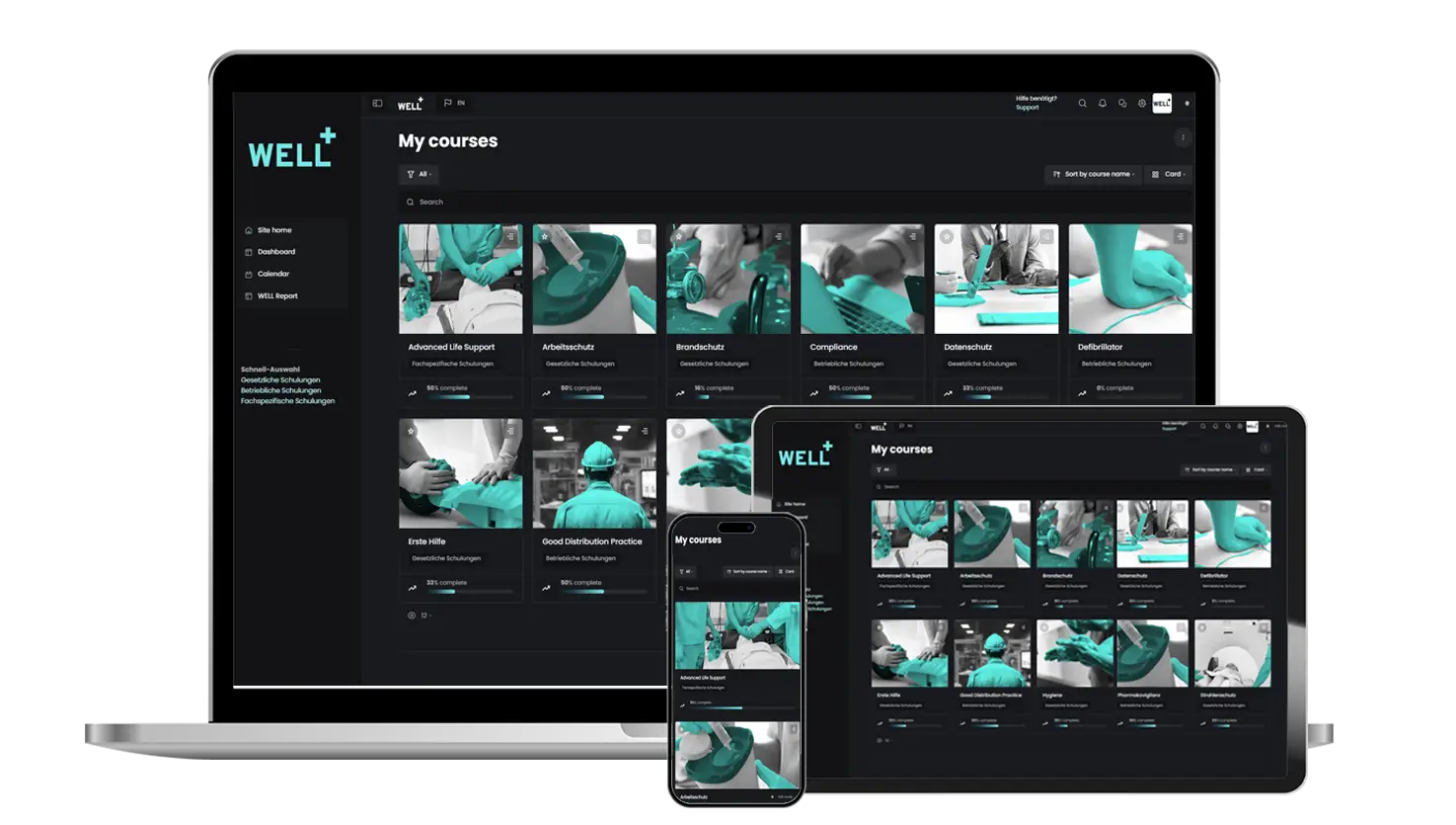 Use WELL Learnings as a template for numerous legal, company-specific, and industry-specific training courses without investing significant time and effort. Customization is also possible.